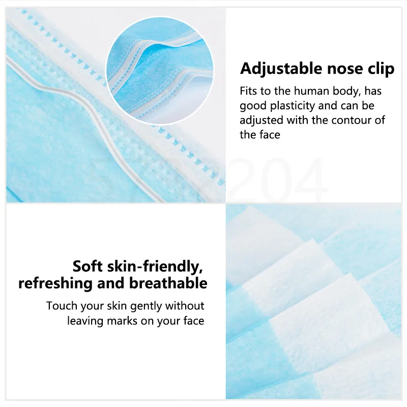 10/50/100/200PCS Disposable Mask Earloop Pink Bule Black White Mouth Masks 3 Layers Meltblown Non-Woven Breathable Face Mask